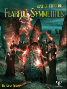 Last night, I had the distinct pleasure of playing in a Fearful Symmetries one-shot run by Steve Dempsey who wrote the Fearful Symmetries frame for Pelgrane Press’ Trail of Cthulhu. I wrote the following earlier today for the Raspy Raven server as a play report, focused on what Fearful Symmetries brings to the table as Steve had already written a summary play report.